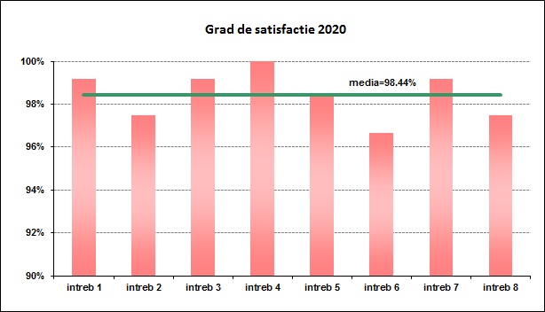 În urma centralizării şi prelucrării chestionarelor de satisfacţie a clienţilor, am constatat că toţi pacienţii interogaţi au răspuns afirmativ la subpunctele referitoare la respectarea cerinţelor clientului şi la comportarea corespunzătoare a personalului.